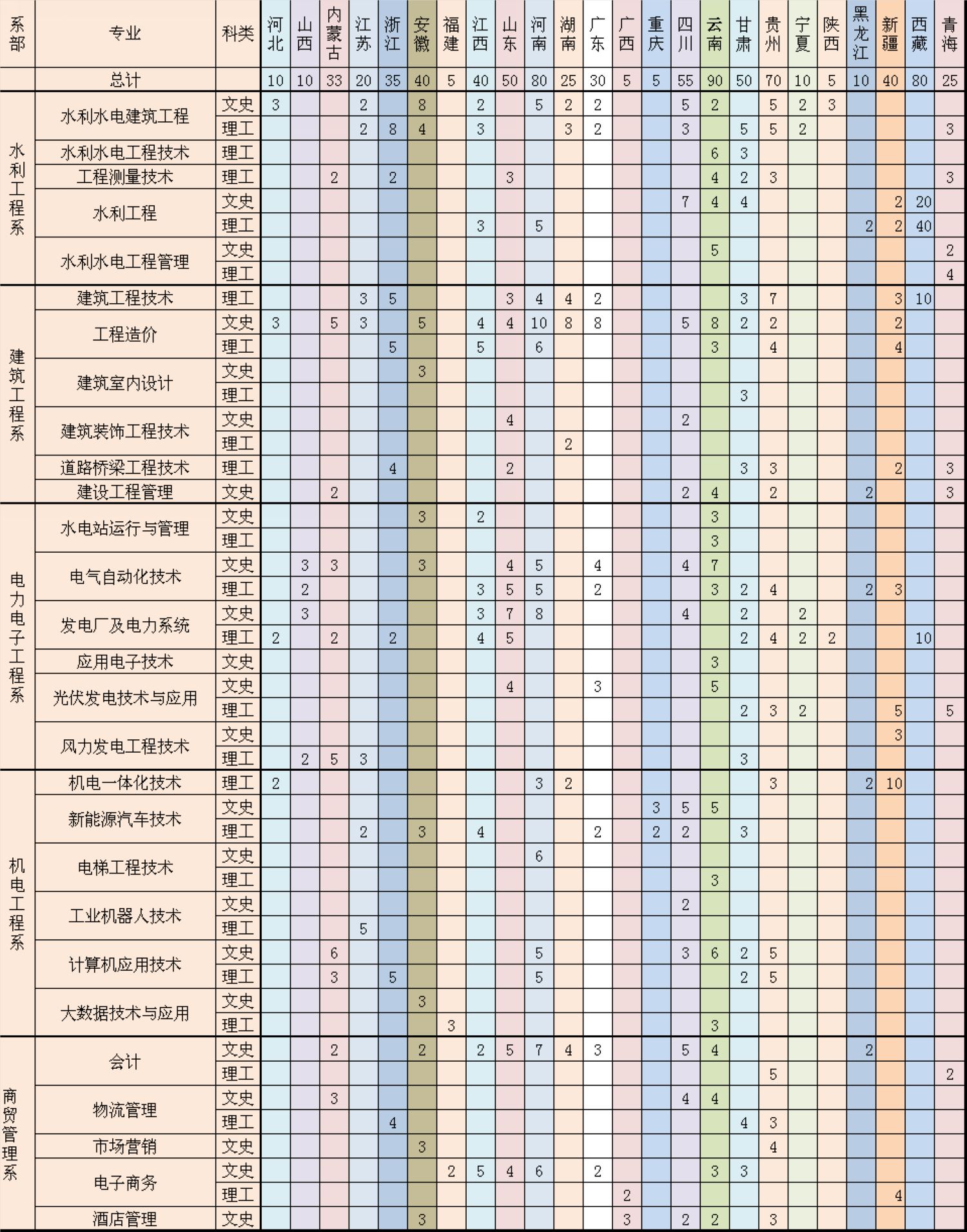 2020年Beat365官网省外招生计划一览表