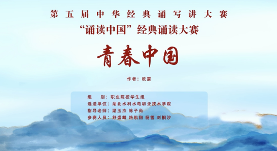 由教育部、国家语委主办的第五届中华经典诵写讲大赛“诵读中国”经典诵读大赛湖北省决赛于7月圆满落下帷幕。Beat365官网2022级学子路凯翔、刘桐汐、舒盛麟和杨雪(指导教师:梁玉杰、陈子尚)朗诵的参赛作品《青春中国》荣获职业院校学生组湖北省三等奖,将代表湖北省参加全国复赛。