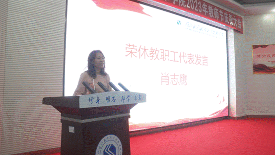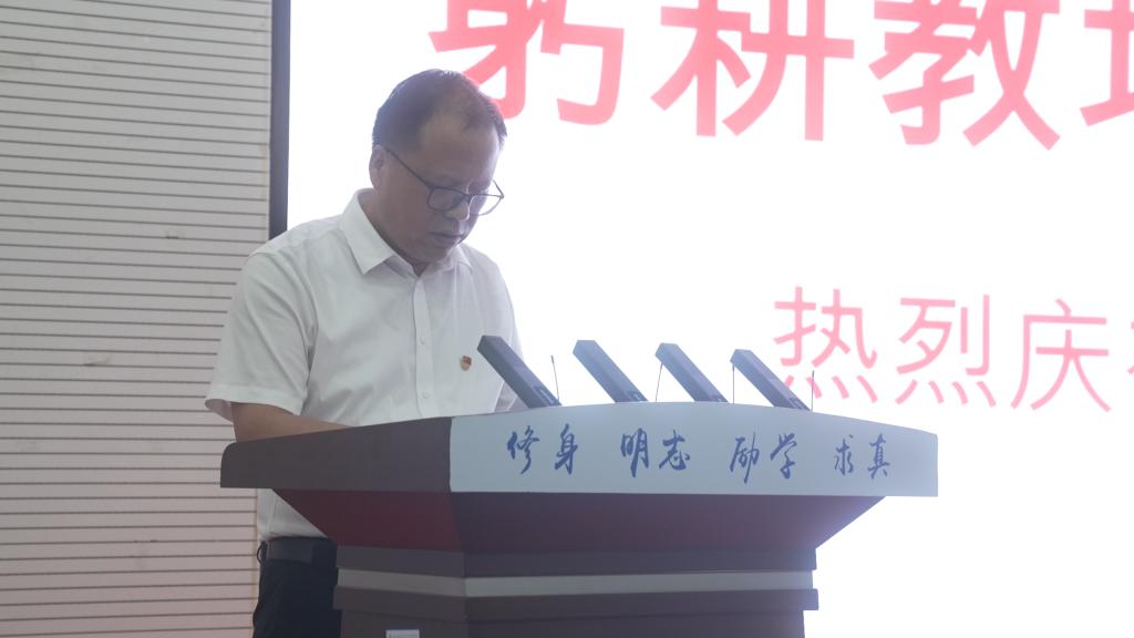 焦泰文代表厅党组向长期以来辛勤耕耘三尺讲台、无私奉献的广大教师和教育工作者致以节日的问候,并从四个方面勉励全院教职工:一是要坚定初心,做勇担使命的合格教育者;二是要坚执操守,做立德树人的灵魂工程师;三是要坚守本职,做敬业授业的成长引路人;四是要坚持本分,做爱生爱校的优秀教书匠。