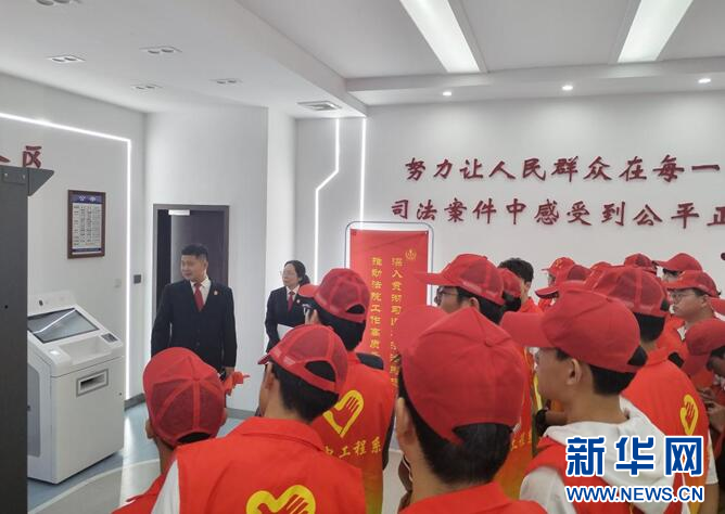巡湖活动结束后,志愿者们乘车前往东湖人民法庭、东湖新城社区参观。东湖人民法庭李志涛向同学们介绍了东湖法庭概况、内设机构设置、人员情况、现代化诉讼系统及法庭工作等内容,并安排4名学生代表旁听了民事庭审。