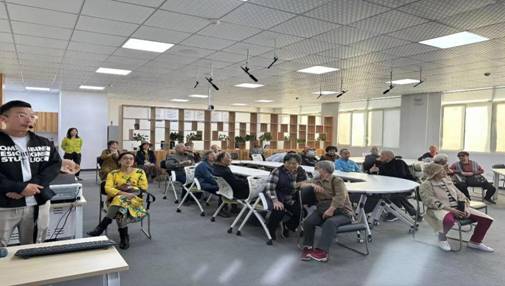 最后,在学院党委委员、人事处处长桂剑萍同志的陪同下,退休教职工们来到学院汤逊湖校区,先后参观了水利工程系、建筑工程系和电力电子工程系实训室。再次走进教室的老教师们被眼前优美的教学环境和先进的教学设施感染,他们围着年轻教师提问,怀念教学时的美好回忆。最后,在电力电子工程系实训室大家观看了学院校史馆的建设和布局,退休教职工们不禁感叹学院在院领导的带领下发生了翻天覆地的变化。他们纷纷表示,感谢学院组织开展的庆祝重阳节活动,他们将继续关心和支持学院建设,在学院事业发展中贡献力量,也祝愿学院未来更加蒸蒸日上!