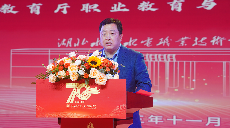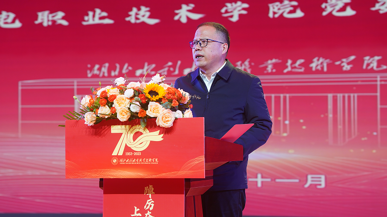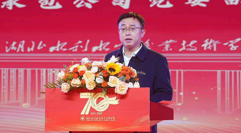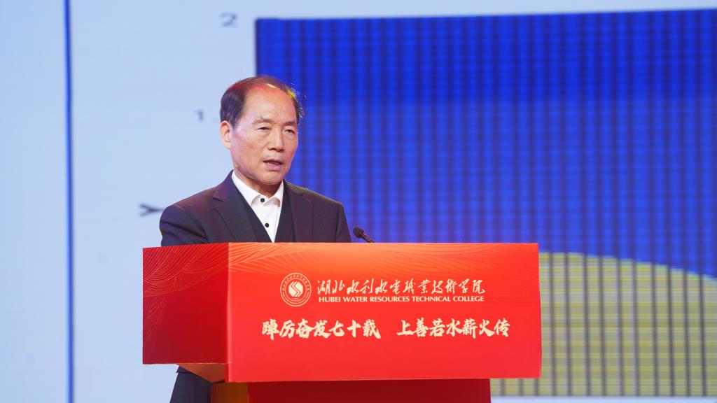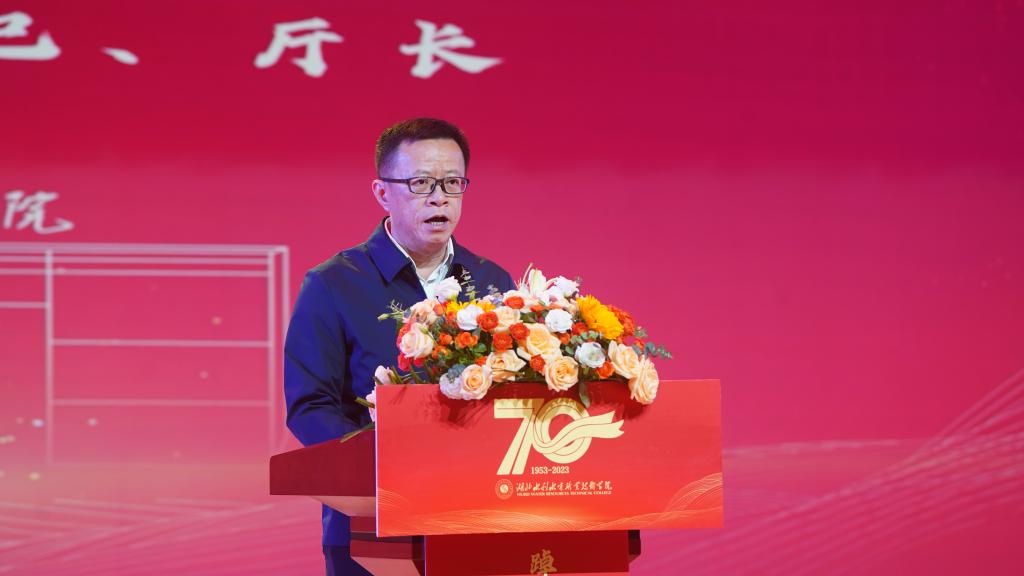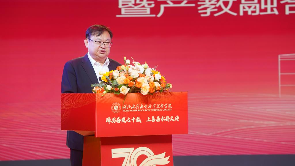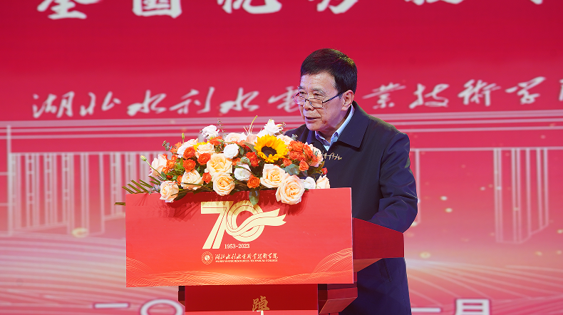 湖北省水利厅党组书记、厅长廖志伟在讲话中,向Beat365中国唯一官方网站办学70周年表示热烈祝贺,肯定了学校70年来建设发展取得的成绩。他指出,近年来,学校全面贯彻党的教育方针,积极适应行业和地方发展需求,办学条件得到质的改善,专业建设显著提升,特别是学校立足水利特色,聚焦国家重大战略需求,持续推进职普融通、产校融合、科教融汇,动态调整学科设置和人才培养方式,为水利行业培养了大量高素质技术技能人才。希望学校坚持正确办学方向,彰显水利办学特色,以服务中华民族伟大复兴为重要使命,为党育人、为国育才,办好人民满意教育,培养堪当民族复兴大任的新时代水利人才、各类人才,为湖北水利事业和区域经济社会发展做出新的更大贡献。