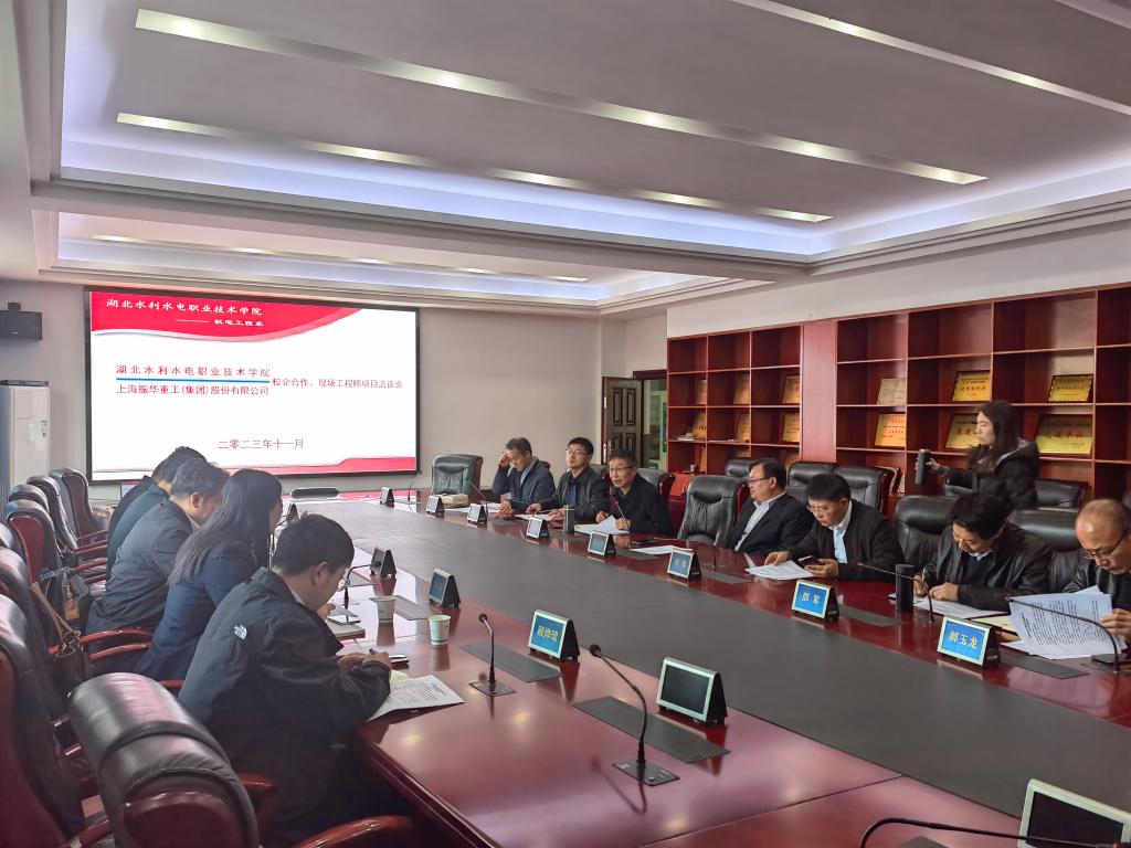 11月28日下午,上海振华重工(集团)股份有限公司长兴分公司党委书记傅勇平携集团人力资源部高管一行五人到Beat365官网机电工程系洽谈校企合作与现场工程师专项培养计划事宜,洽谈会在机电楼三楼会议室举行,学院党委书记王玉才,党委委员、党委办公室主任张博及机电工程系相关负责人、机电一体化技术专业负责人参加洽谈会。