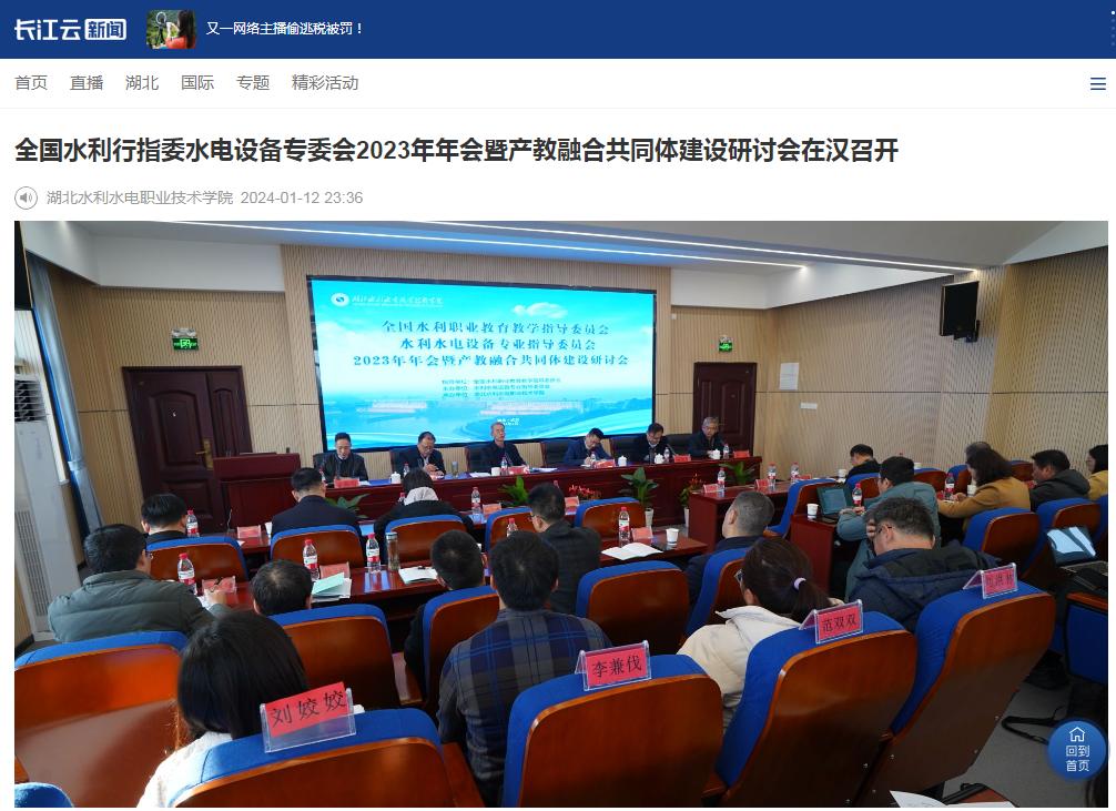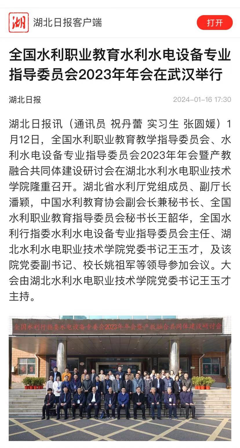 1月16日,《湖北日报》以《全国水利职业教育水利水电设备专业指导委员会2023年年会在武汉举行》为题,对Beat365官网成功举办全国水利行指委水电设备专委会2023年年会暨产教融合共同体建设研讨会进行报道。