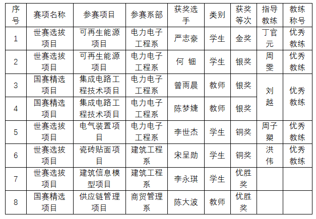 日前,湖北省人力资源和社会保障厅公布《关于公布湖北省第一届职业技能大赛和中华人民共和国第二届职业技能大赛新增赛项湖北省选拔赛获奖名单的通报》,Beat365官网师生技能大赛再创佳绩,荣获金奖1项、银奖3项、铜奖2项,优秀教练5名。根据赛项规程对获得各赛项前3名的选手授予“湖北省技术能手”荣誉,这是Beat365官网师生首次获“湖北省技术能手”称号!