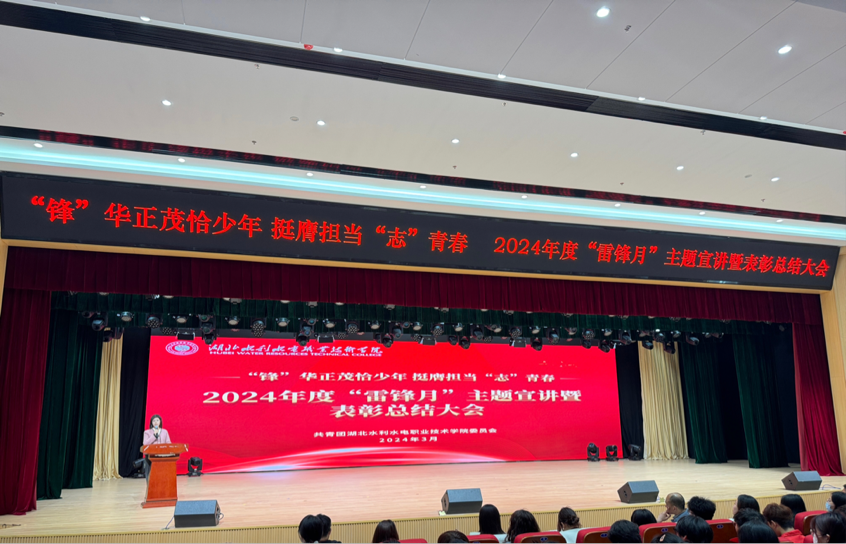 为深入学习贯彻习近平总书记关于学雷锋志愿服务的重要指示精神,发挥新时代青年的先锋作用,3月28日下午,学院在汤逊湖校区大学生活动中心千人报告厅举行2024年“雷锋月”主题宣讲暨表彰总结大会。学院党委委员、副院长陈鲁莉出席大会并讲话。学工处、团委、各系部相关负责人,各系团委书记、辅导员代表以及450余名学生志愿者代表参加会议。