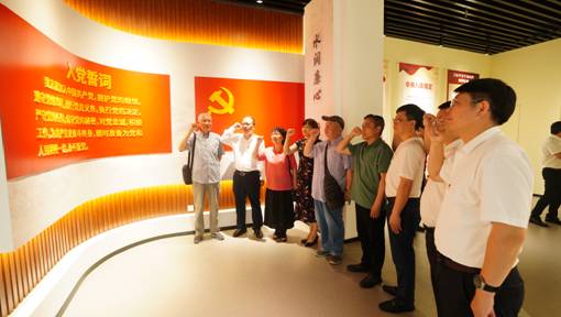 退休干部一行先后参观了汤逊湖校区校史馆、廉政馆和大学生活动中心。在校史馆,走过学院历史发展轨迹,回顾七十余载峥嵘岁月,感悟校史底蕴。在廉政馆,以党纪学习教育为切入点,深入了解学院将廉洁文化建设融入到校园建设的全方面。最后,姚祖军带领全体参观人员面向党旗,重温入党誓词,用铮铮誓言再一次表达对党的事业的忠诚与热爱。