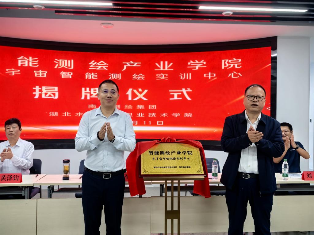 仪式上,学院党委副书记、院长姚祖军,南方测绘集团副总裁郭宝宇共同为元宇宙智能测绘实训中心揭牌。
