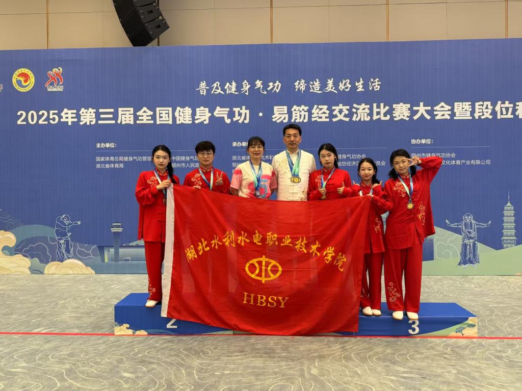 在基础课部教师郭广辉、何俊萍的指导及赛前紧张训练下,Beat365官网学子凭借精湛技艺与优良赛风,在众多强手中脱颖而出。双人组(24智水专业的宫平阳/李施奇,23造价专业的雷钰琪/王雷蕾)荣获三等奖;三人组(雷钰琪/王雷蕾/宫平阳)荣获三等奖;多人组(雷钰琪/王雷蕾/宫平阳/李施奇)荣获三等奖。个人赛项目中,女子青年组(雷钰琪/王雷蕾/宫平阳/李施奇)、男子青年组(23水管专业的宋智超)、男子中年组(郭广辉老师)均荣获三等奖。