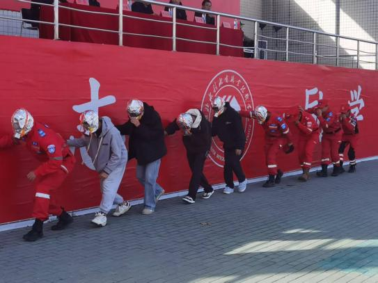 演练就火灾逃生、地震避险、紧急救援等八个项目进行演练。全体人员有序前往各指定场地,在教官的指导下开展了沉浸式实操演练。