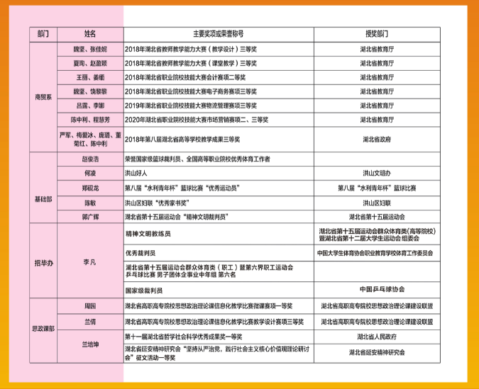 2018年度学院及部门获奖情况