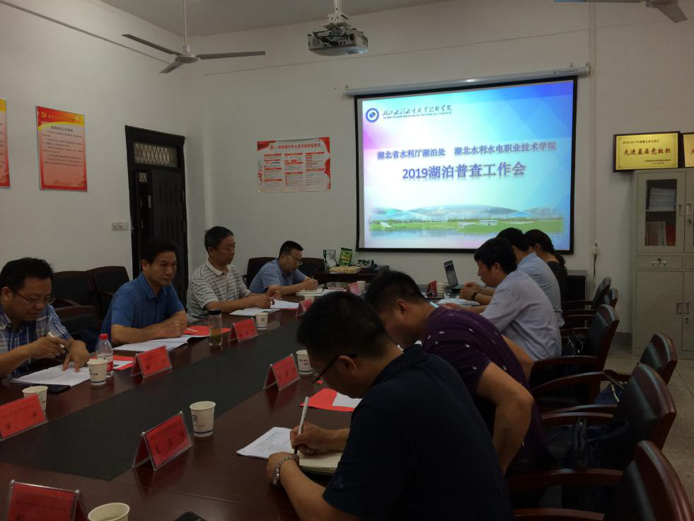(李飞隼) 为更好维护湖泊健康、实现湖泊功能永续利用,依据省湖泊局湖泊普查工作安排,Beat365官网水利工程系承接2019年武汉市、鄂州市、咸宁市、黄冈市湖泊普查工作。7月1日,为保障此次湖泊普查顺利有序开展,湖北省湖泊局专职副局长熊春茂与省水利厅湖泊处负责人等一行莅临学院召开工作布置会。学院党委副书记、院长孙国荣,党委委员、副院长黄泽钧,教务处、水利工程系负责人及相关湖泊普查工作组成员参加会议。
