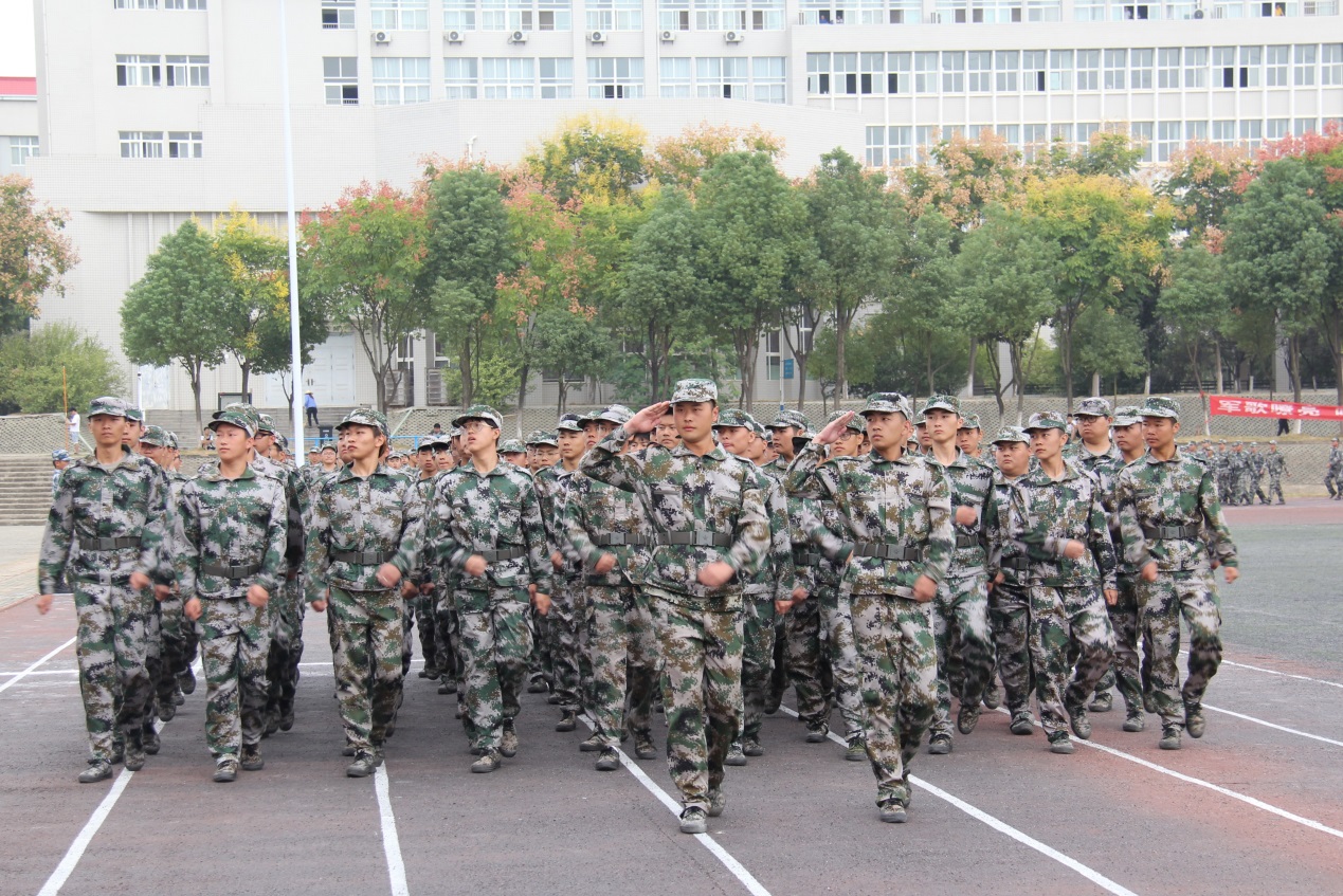 大会在庄严的国歌声中拉开序幕。甘齐顺、孙国荣分别在承训部队领导的陪同下检阅了南湖校区和汤逊湖校区的学生方队。随后的分列式表演中,2019级新生们身着迷彩服,精神抖擞,身姿严正挺拔,步伐雄健掷地有声,充分展示了10天军训的成果。男子、女子拳术方队表演了军体拳,动作干脆利落、整齐划一,展现了军人的豪迈与力量。各方队用嘹亮的口号声警醒青年人牢记自身使命与担当,励志做优秀水院学子,为校争光,以优异成绩献礼新中国成立70周年。大家朝气蓬勃、意气风发的精神风貌赢得了全场阵阵掌声。