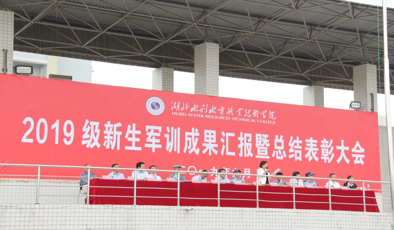 党委副书记、纪委书记李行洋和党委委员、人事处处长庹祖明分别在两个校区宣读了《关于表彰2019级新生军训先进集体、先进个人的决定》,在主席台就座的领导向获得优胜方队的学生代表当场颁发了锦旗。