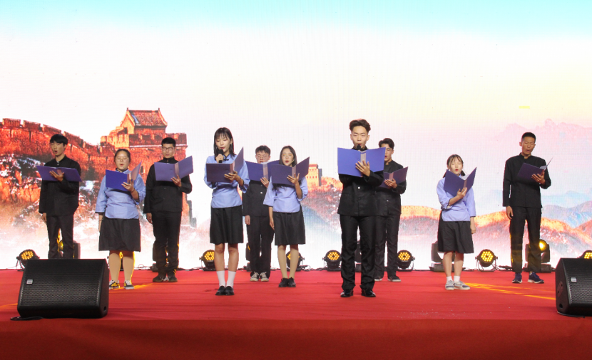 勇武有力的跆拳道串烧,意境唯美的国风歌曲《知否知否》《鼓楼》迅速吸引全场目光,点燃晚会氛围。曲调悦耳的歌曲独唱《崇拜》、热情洋溢的舞蹈《Boom》纷纷上演,展现同学们多才多艺;相声《学唱歌》、舞台剧《金钩》、小品《四大才子》以幽默的语言、逼真的表演让全场欢笑连连;19级酒店管理专业表演的《礼仪操》展现了同学们的专业素养;声情并茂的诗朗诵《不朽》回忆战争岁月,深深感染了在场每一位听众。形式多样、内容丰富的各类节目激起现场阵阵掌声。晚会最后,全场齐声高唱《我爱你中国》《歌唱组国》,向祖国“表白”,嘹亮的歌声寄托了师生对伟大祖国深深的热爱与祝福。