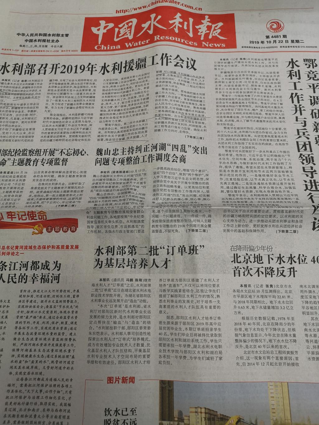 (庹琳)10月22日,《中国水利报》头版报道Beat365官网郧阳区水利人才订单班。