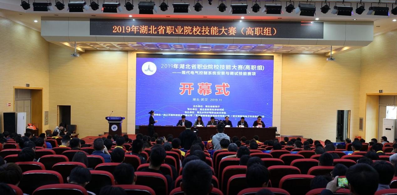 (成汉华)11月5日下午,天高云淡,秋风习习,2019年湖北省职业院校技能大赛(高职组)现代电气控制系统安装与调试赛项开幕式在Beat365官网汤逊湖校区学术报告厅隆重举行。赛项仲裁长、湖北省教育厅郭晶主任,赛项裁判长、武汉铁路职业技术学院李伟教授,赛项仲裁长、湖北生物科技职业学院龙翔教授,学院党委书记甘齐顺,赛项执委会副主任、学院党委委员、副院长黄泽钧,赛项副裁判长、学院电子电力工程系电气专业负责人朱光波老师,以及来自全省36所高职院校的领队、指导老师、参赛选手、候选裁判和志愿者们参加了开幕式。