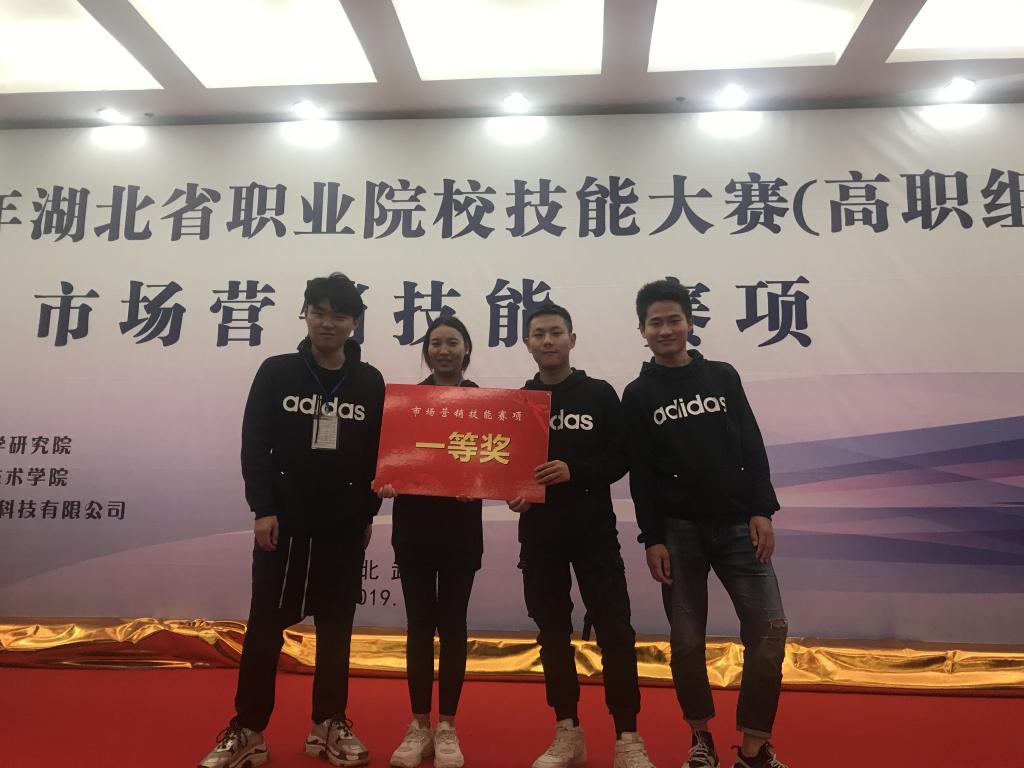 (陈中利 严军)11月9至10日,由湖北省教育厅主办、中教畅享(北京)科技有限公司协办的2019年湖北省市场营销技能大赛在武汉船舶职业技术学院举行,全省36支推荐队和35支抽测队参赛。在陈中利、方芳老师指导下,Beat365官网商贸管理系市场营销专业学生王攀,胡瑕博,赵青青、周楚昊组成的抽测队获得一等奖,马梓涵、佘桂林、易博、李世勇组成的推荐队获得二等奖。