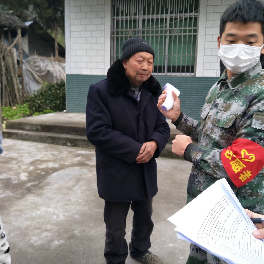 家在宜昌市五峰县湾潭镇小凤池村,他每天的工作内容是在村口站岗执勤,检查往来车辆以及上门为村民们测量体温并做好登记。