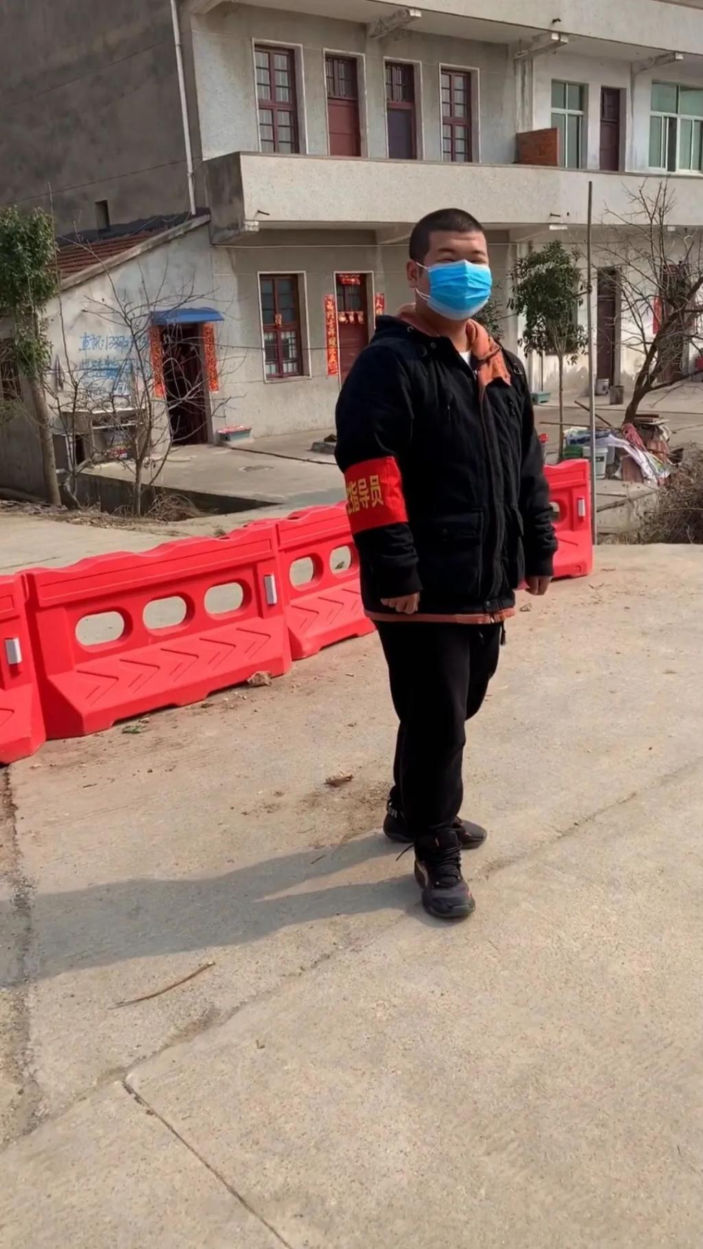 家住湖北省孝感市孝南区朋兴乡,每天的工作内容是防止外来人员进入本村并检查过往车辆。