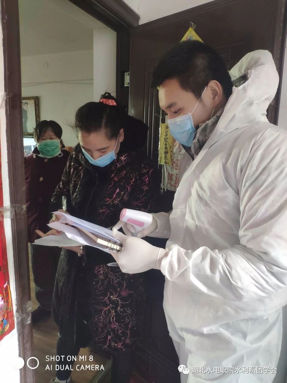 家在湖北省荆门市钟祥市莫愁湖社区,工作内容是在卡点值班站岗,登记过往人员资料和体温测量,并帮社区居民配送生活用品。