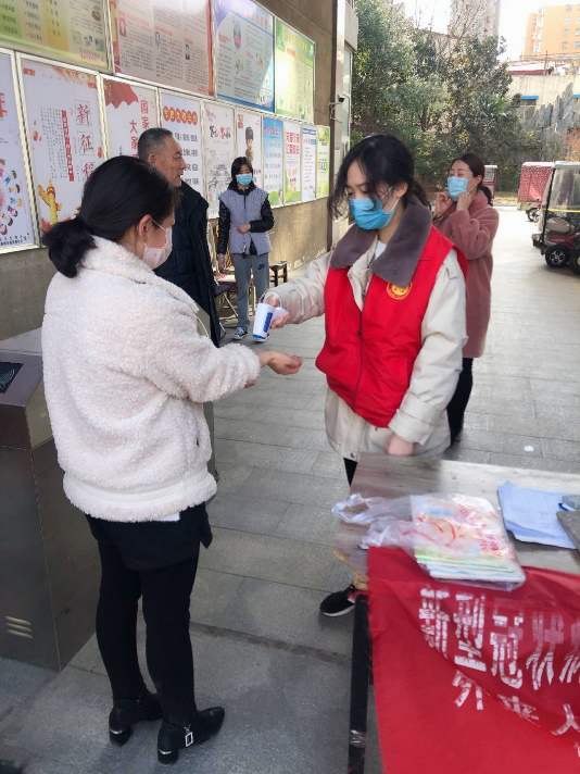 辅导员桂雅洁,2月13日起在居住的辖区参加志愿者工作,在小区门口负责登记、量体温、统计、送菜等工作。她说:“我是党员,有困难我就应该第一个上,在这种危难时刻,我们每一个人都不能只是一名看客,都应为抗击新型冠状病毒肺炎疫情工作贡献一份自己的力量。”