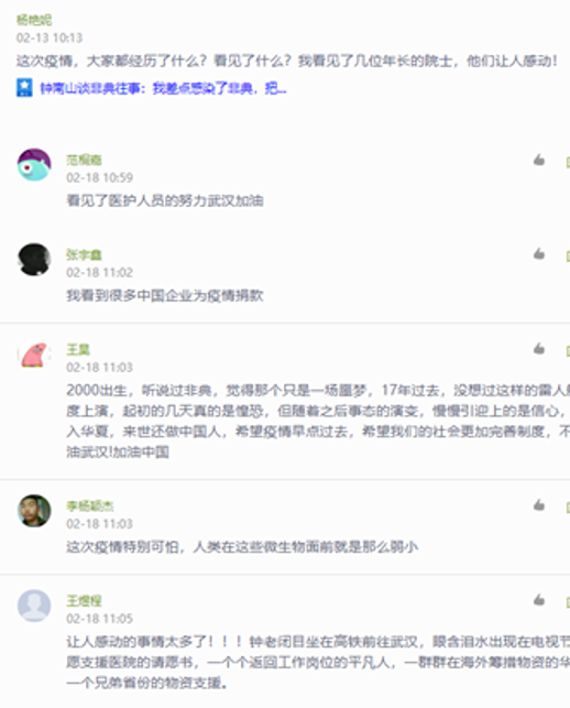 抛出问题、提供思路、凝练观点,引导式、启发式教学更能提高学生的参与感与积极性。为了将“战疫”精神融入思政课堂,教师实时更新课程内容,增加紧跟疫情和时政的课程内容,并在讨论区中布置讨论活动,教师不唱“独角戏”,而是引导学生发表疫情期间的感想,从国家政府、全社会人民积极“抗疫”的角度感悟领会中国理论、中国道路、中国制度、中国文化,增强思政课的吸引力和感召力,让学生学有所得,对书本知识的理解更加深刻。