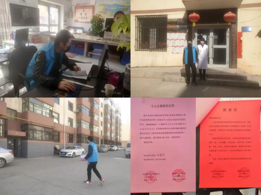 自2月4日开始,他每天到社区辖区宣传疫情防控信息,排查防止外来人员和外来车辆进出辖区楼院的情况,帮助社区办公室进行防疫数据整理,做一些力所能及的事,助力家乡的疫情联防工作,为保障家乡人民的身体健康和生命安全贡献自己的力量。身为新时代的大学生,他弘扬志愿者精神,为国家疫情防控工作做贡献,不畏严寒、不顾安危,在防疫“一线”当先锋做表率,用实际行动诠释“逆行者”的坚毅和果敢,将自身价值发挥到最大化。