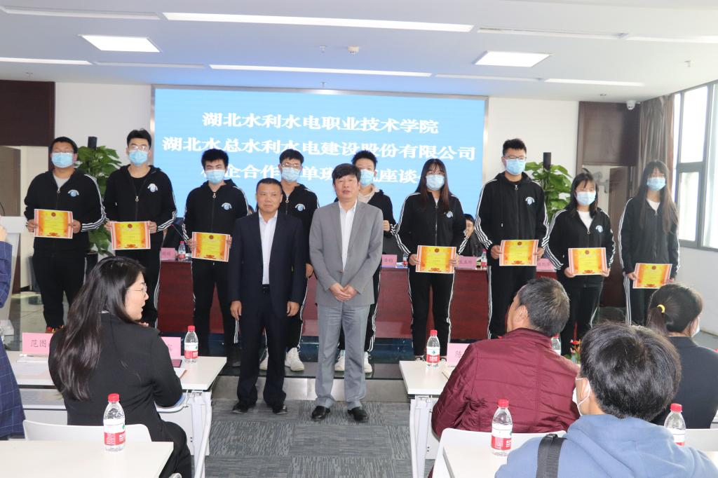 座谈会上,李建林对订单班学生一年来取得成绩予以充分肯定,希望同学们认真学好专业课,通过自身努力,实行自己的人生价值。黄泽钧感谢公司对学生的关爱,表示学院高度重视水总订单班,制定了针对性的人才培养方案,配备了最好的师资,希望同学们珍惜时间,好好学习,不负水总重望。订单班团支书刘俊彦同学作为学生代表汇报发言。公司对九名优秀学生进行了表彰。