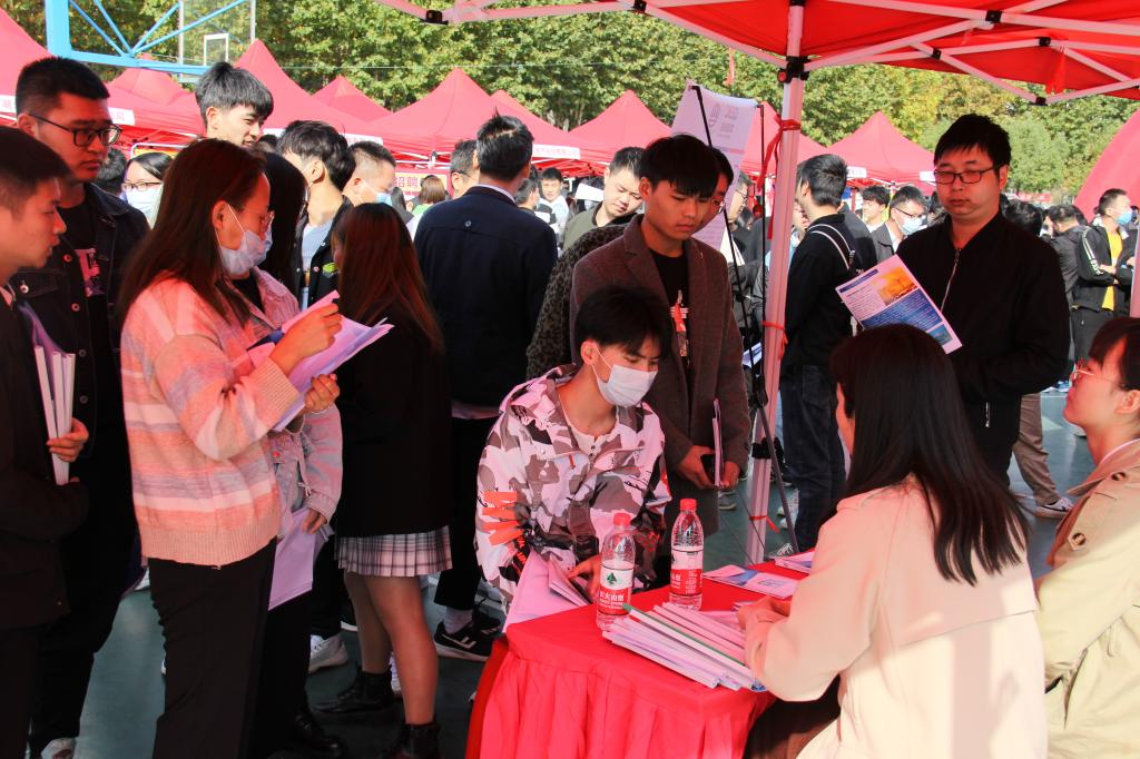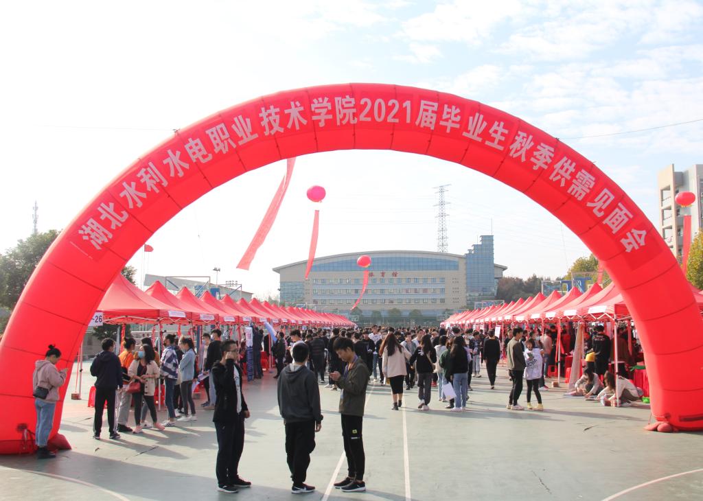 (招毕办)11月5日,Beat365官网在汤逊湖校区篮球场成功举办2021届毕业生秋季供需见面会。学院党委书记甘齐顺,党委委员、副院长黄泽钧,党委委员、招毕办主任冷涛及各系部主任和书记亲临招聘会现场指导工作,学院千余名2021届毕业生参加了此次招聘会。
