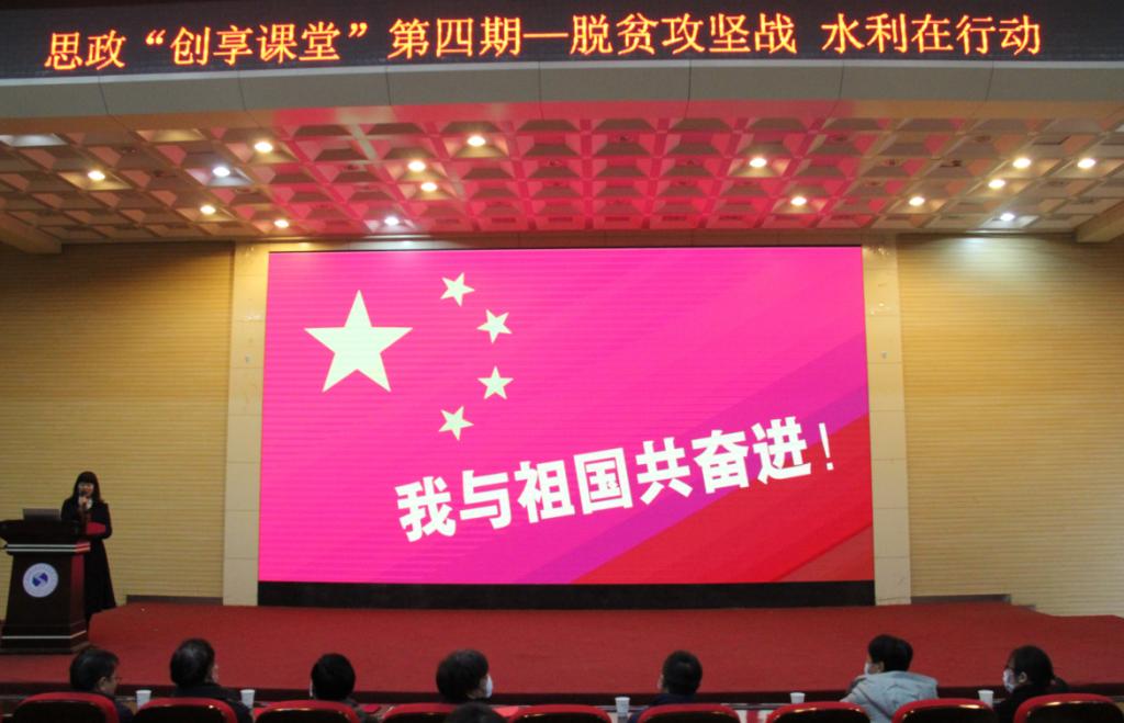 (思政课部)12月11日上午,由学院五位不同专业教师同上的思政课“创享课堂”,在汤逊湖校区报告厅再次开讲。本次课的主题是“脱贫攻坚战 水利在行动”。学院领导、相关部门负责人、专业教师、辅导员和各系学生代表共同现场聆听本次课程。