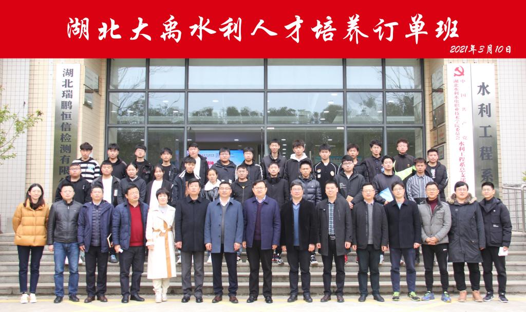(达娃拉珍)3月10日,Beat365官网与湖北大禹建设股份有限公司(以下称“湖北大禹公司”)合办的“大禹订单班”开班暨签约仪式在汤逊湖校区举行。湖北大禹公司总经理胡刚、副总经理罗应军、人资行政部部长任雁平、招聘主管汤志军,学院党委副书记、院长王玉才,党委委员、副院长黄泽钧,党委委员、招毕办主任冷涛,教务处和水利工程系负责人、部分专业教师及全体大禹订单班学生参加了开班仪式。仪式由黄泽钧主持。