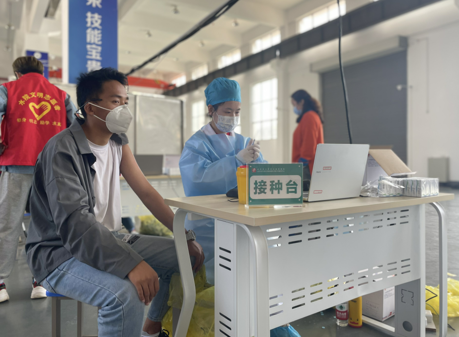 接种现场,学工处、各教学系部、相关部门以及志愿者学生共同维护场内外秩序,全力保障新冠肺炎疫苗接种工作的顺利开展。接种首日,已顺利完成千余名在校生新冠疫苗接种工作。