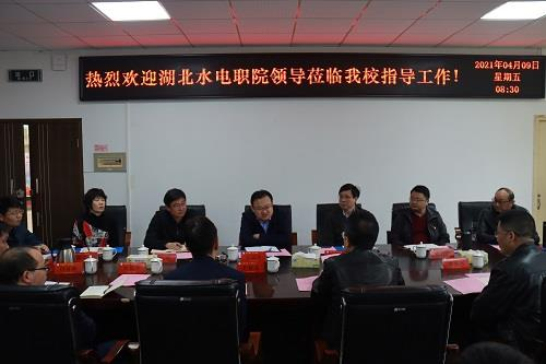 (人事处)4月8日,院党委副书记、院长王玉才,党委委员、副院长庹祖明,党委委员、招生就业指导办公室主任冷涛率队到湖南水利水电职业技术学院考察学习,教务处、学工处、继续教育部等部门负责人参加。考察组一行受到该校党委书记钟建宁的热情接待。