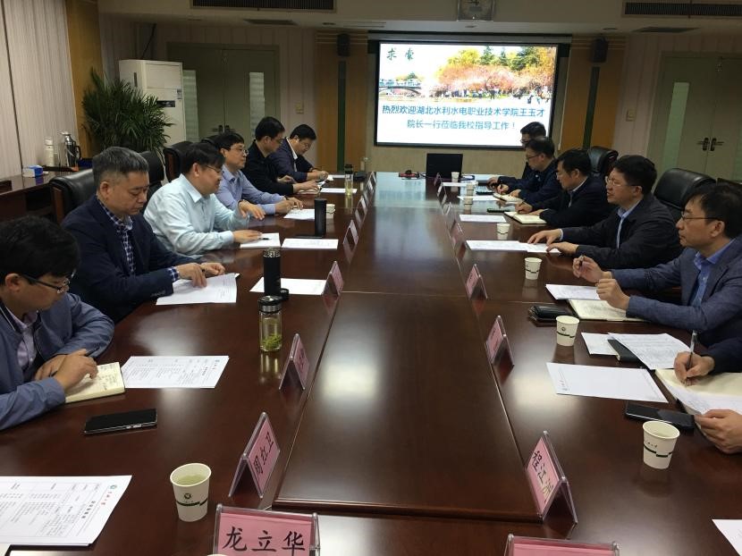 (刘飞)5月17日,院党委副书记、院长王玉才,党委委员、副院长庹祖明,党委委员、电力电子工程系主任丁官元,财务处、水利工程系、志宏设计院、傲水科技等部门负责人前往三峡大学考察交流。考察组一行受到该校副校长陈和春及相关部门负责人的热情接待。