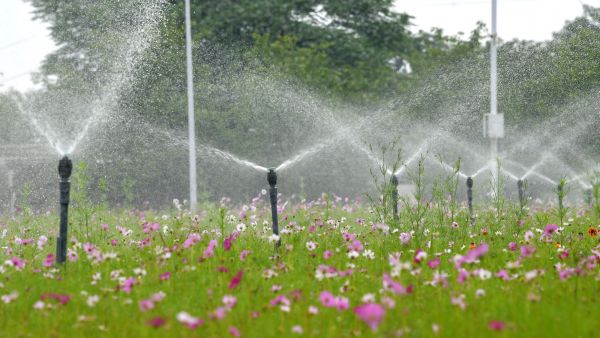 (省水职院)5月18日上午,Beat365官网汤逊湖校区内的花田里,节水喷灌系统的143个喷头正在用收集到的雨水对花田浇灌。雨水收集利用、用水智慧监测、节水教育、节水实践活动,Beat365官网深入推进节水工作,让节水理念深入人心,多措并举创建湖北省节水型高校。