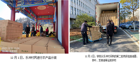 (驻村工作队)12月2日,学院对口帮扶的英山县金家铺镇乐家冲村近20万元的农副产品运抵学院汤逊湖校区,这是我院助力乡村振兴、促进共同富裕的又一具体举措。
