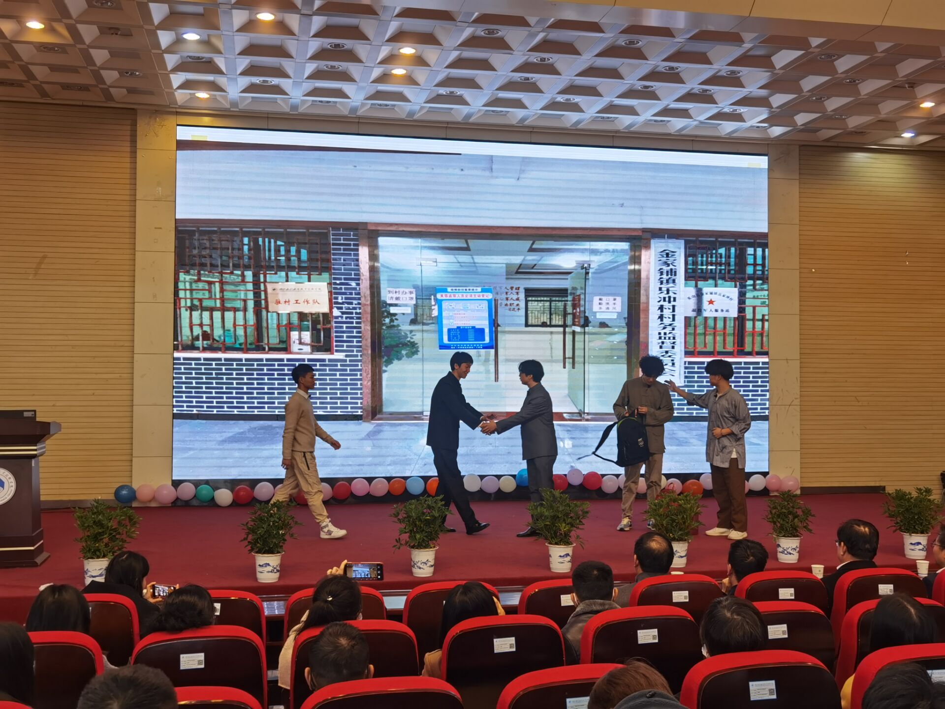 杨艳妮、罗彩莲、周园、蒋达四位教师把振兴乡村与中华民族伟大复兴深度结合,深入浅出地从国家战略布局的高度阐释乡村振兴的时代内涵与现实价值,号召Beat365官网青年学子投身乡村振兴的伟业;来自水利工程系大禹订单班的学生,以Beat365官网驻村干部桂剑萍同志的亲身经历为蓝本,选取有代表性的故事由学生进行表演展示,生动再现了Beat365官网振兴英山县乐家冲村的工作情景;商贸管理系陈汉华老师和电力电子工程系周文老师从学科专业角度出发,以如何进一步振兴乐家冲村为问题导向,运用引导式提问、头脑风暴等教学方法,与现场学生展开教学相长的互动讨论,为现实中的乡村振兴出谋划策。