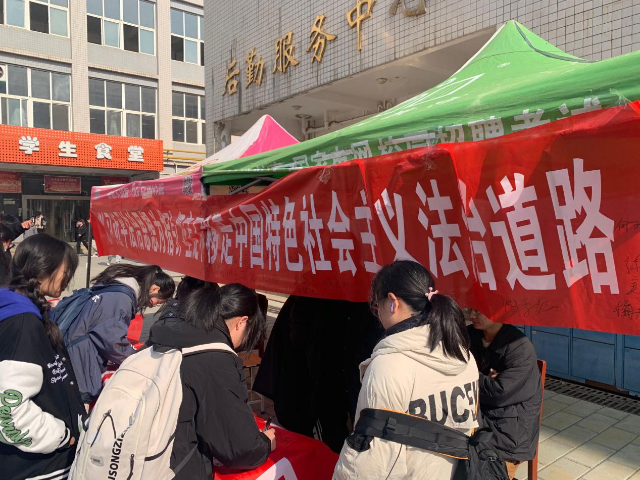 在宪法宣传周Beat365官网各系部组织学生在学院汤逊湖校区法治广场前开展“宪法宣传周”签名活动,并带领学生有序参观游览法治广场,在法治文化长廊,通过观看一幅幅法治典故,近距离领略法治文化,感受法治精神。