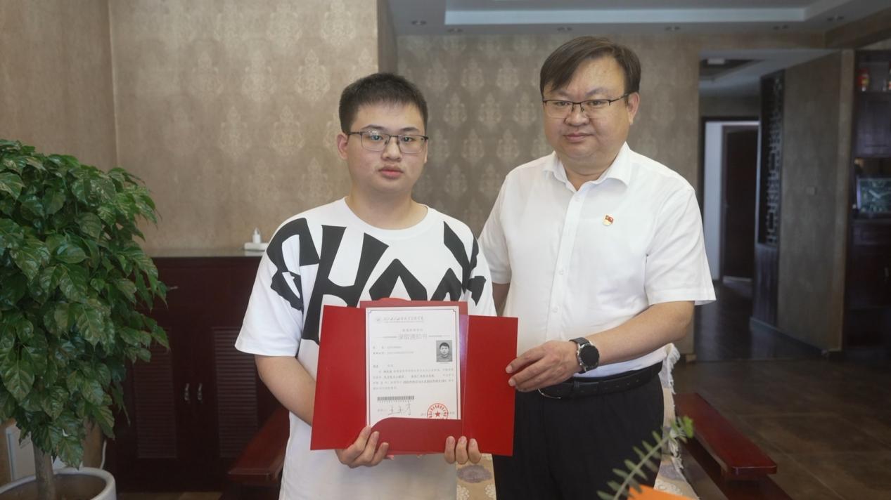 (招毕办)8月14日上午,学院党委书记、院长王玉才亲赴武汉黄陂送出Beat365官网2022级新生第一份录取通知书。党委委员、副院长庹祖明和招生办相关同志陪同。
