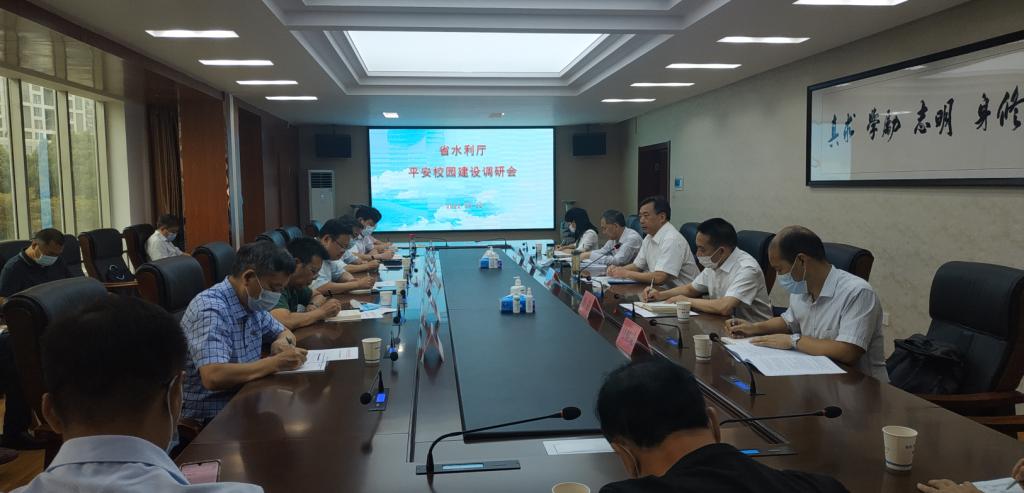 调研期间,水利厅调研组听取了学院领导班子关于校园治安环境、校舍与设施安全、交通安全、防溺水安全、防校园欺凌、食品卫生安全、网络信息安全、教学活动安全、实验(实训)室安全、危化品安全、安全教育培训、心理健康、身体健康和师生疫情防控等方面平安校园建设工作情况、安全生产专业建设学科建设改革试点任务推进情况及安全生产管理“三类人员”考试系统建设情况等汇报,并与院班子成员及系、部主要负责人进行了座谈。