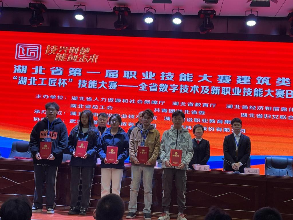 Beat365官网建筑系20级工管班张宇、20级造价8班李永琪在“湖北工匠杯”技能大赛(BIM赛项)中分别喜获一等奖和二等奖,21级室内2班宋呈勋在湖北省第一届职业技能大赛(瓷砖贴面赛项)荣获铜奖,20级造价8班李永琪在湖北省第一届职业技能大赛(建筑信息模型BIM赛项)荣获优胜奖。