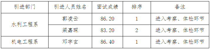 根据学院《高层次人才引进考核办法(试行)》的要求,经报名、资格审查、面试等环节,现将2024年高层次人才引进面试成绩及进入考察体检人选名单进行公布。
