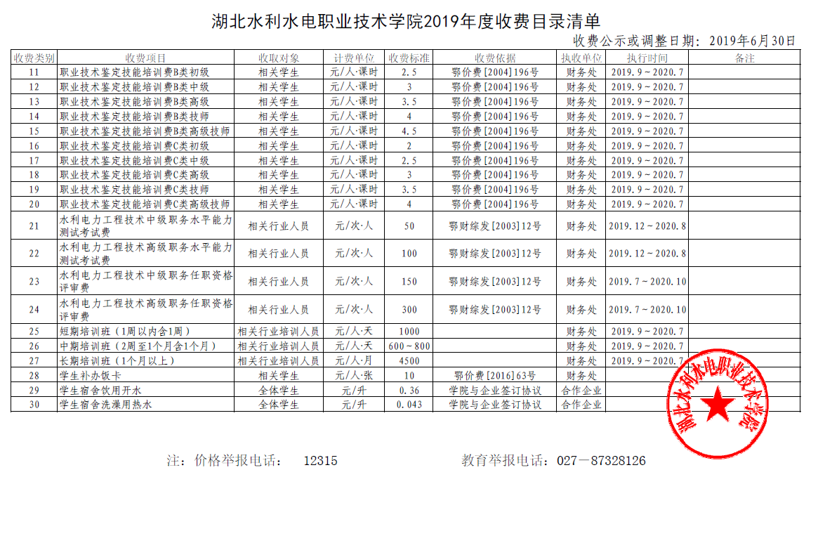 Beat365中国唯一官方网站2019年度收费目录清单