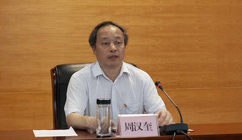 周汉奎指出,党中央和习近平总书记非常重视这次全党“不忘初心、牢记使命”主题教育,开展好这次教育活动意义重大。根据省委统一安排,我厅及厅直单位是第一批开展主题教育活动的单位,从今年6月开始,8月底基本结束,必须深入学习领会习近平总书记的重要讲话精神,全面贯彻落实中央、省委的有关部署和要求,提高思想认识,聚焦目标任务,确保主题教育取得实实在在的成效。一要提高政治站位,增强思想自觉、行动自觉。习近平总书记历来就非常重视党的初心和使命,我们要紧跟总书记步伐,充分认识到开展主题教育是用习近平新时代中国特色社会主义思想武装头脑的迫切需要,是推进新时代水利厅机关及其直属单位党的建设的迫切需要,是保持党的水利事业同人民群众血肉联系的迫切需要,是推动新时代水利改革发展的迫切需要,切实把思想和行动统一到中央和省委决策部署上来,不断增强开展主题教育的思想自觉、政治自觉和行动自觉。二要聚焦目标任务,确保方向正确、主题突出。始终聚焦党中央对主题教育提出的总要求和目标任务,守住不断满足全省人民对优质水资源、健康水生态、宜居水环境的需要的初心,牢记为实现“两个一百年”奋斗目标,主动担负起为推动湖北高质量发展提供坚实水利保障的使命,围绕“水利事业补短板、水利行业强监管”的总基调,有的放矢抓整改,以扎实过硬的作风,推进习近平新时代中国特色社会主义思想在水利领域的深入实践,推动党的路线方针政策和各项决策部署在全省水利领域得到不折不扣贯彻落实;始终聚焦主题教育的根本任务,深入学习贯彻习近平新时代中国特色社会主义思想,锤炼忠诚干净担当的政治品格,为实现伟大梦想共同奋斗;始终聚焦五个方面的具体目标,一定要结合水利工作实际,做到理论学习有收获、思想政治受洗礼、干事创业敢担当、为民服务解难题、清正廉洁作表率。三要坚持对标对表,务求落地落细、取得实效。抓学习教育要“深”,抓调查研究要“实”,抓检视问题要“准”,抓问题整改要“细”,真正把学习教育、调查研究、检视问题、整改落实贯穿主题教育全过程。四要加强组织领导,做到规范有序、保障有力。厅党组研究成立厅“不忘初心、牢记使命”主题教育领导小组,及时传达学习中央、省委的指示精神,及时研究重大问题,把握好主题教育的节奏和进度,创新形式,精心组织,充分发挥干部职工和基层群众监督作用,结合厅班子成员基层党建联系点制度,组建厅指导组,采取定点指导、调研访谈等形式,从严从实加强督促指导,对于主题教育走过场的,不仅要对厅直单位、部门主要负责同志问责,也要对督导组问责,同时加大宣传力度,宣传好中央、省委的决策部署,宣传好主题教育的重大意义,宣传好我厅和厅直单位开展主题教育的好经验、好做法,以正面教育为主,同时发挥好警示教育作用,确保主题教育规范有序开展好,取得好成效。