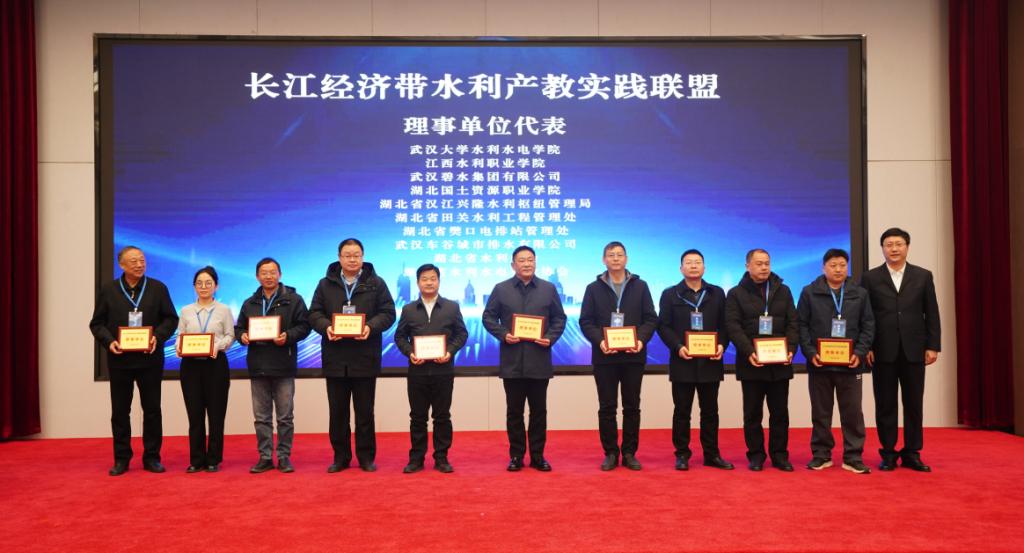在热烈的掌声中,与会领导和嘉宾共同按下启动键,点亮象征长江经济带水利产教实践联盟成立的闪耀之光。