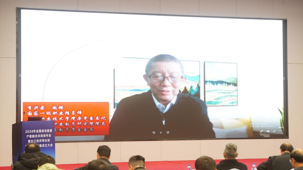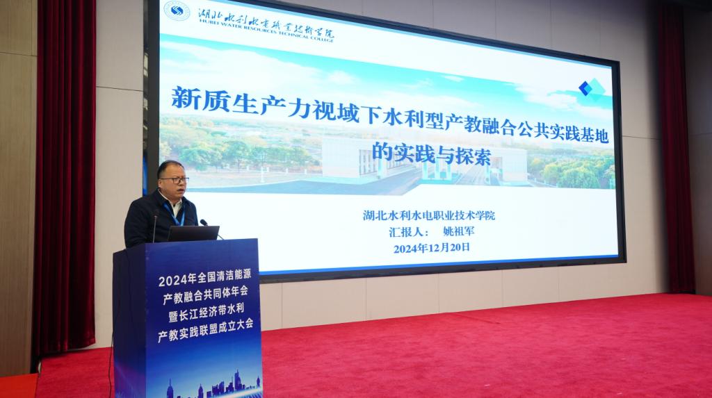 会上,中国长江电力股份有限公司李卫兵、仙桃市水利和湖泊局李功胜分别作了全国清洁能源产教融合共同体2024年工作报告及2025年工作计划、长江经济带水利产教实践联盟筹建情况报告。大会还收到了来自中国水利教育协会和湖北省职业技术教育学会祝贺长江经济带水利产教实践联盟成立的贺信。