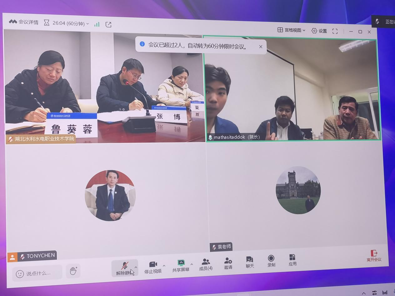 1月13日,学院与曼谷吞武里大学成功举办了线上交流会,双方在友好热烈的氛围中达成了重要合作成果——中泰师生交流基地正式成立。曼谷吞武里大学行政副校长Dr.Sangiam Boossbabarn,学院党委委员、党办主任张博出席会议。