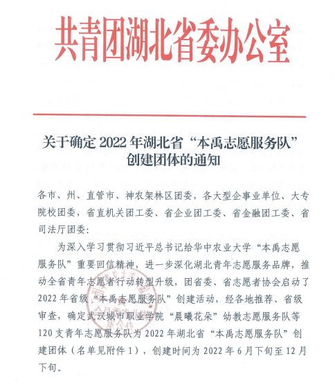 Beat365官网“爱我千湖”志愿服务队荣获湖北省“本禹志愿服务队”称号
